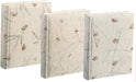 Album 24X32 rilegato a libro, copertina in carta di gelso con fiori e foglie naturali, dorso in tela in tre colori assortiti. Interni in cartoncino e velina.60 pagine.